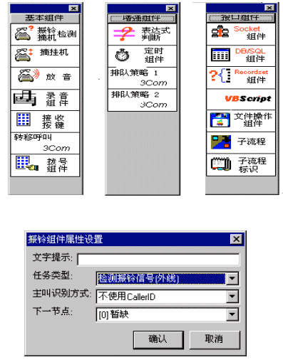 IVR:兩種方案的呼叫中心,目前的IVR系統(tǒng),均采用計(jì)算機(jī)語音卡方式進(jìn)行集成。這些語音板卡,既可以采用目前流行的板卡,也可以采用自行設(shè)計(jì)的板卡。利用廠商提供的API接口,開發(fā)者可以編寫各種語音流程業(yè)務(wù)。PBX交換機(jī)方案的IVR一般由PBX廠家作了主要的功能開發(fā),使用者只須應(yīng)用、配置;谡Z音板卡的呼叫中心一般板卡廠家提供API接口,開發(fā)者應(yīng)用開發(fā)的靈活性較大。