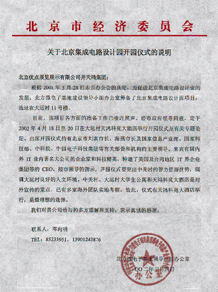 首屆呼叫中心運營管理研討會組委會 重要通告 本次大會組委會及會議舉辦地點“天鴻科園大酒店”日前接到北京市人民政府通知,由于“北京集成電路設(shè)計園開園儀式”將于2002年4月18日至4月20日在大運村、天鴻科園大酒店舉行開園儀式及相關(guān)活動,屆時將有北京市劉淇市長、海燕市長及國家信息產(chǎn)業(yè)部、國家科技部、中科院、中國電子科技集團等有關(guān)部委和機構(gòu)的主要領(lǐng)導(dǎo)出席。按市領(lǐng)導(dǎo)指示,為配合此次重大活動圓滿舉行,“首屆呼叫中心運營管理研討會”日期更改為2002年4月23日至4月25日在北京天鴻科園大酒店舉行,望有關(guān)參會單位做好相應(yīng)的后續(xù)工作。特此通告! 組委會對有關(guān)參會單位的支持與配合表示真誠的感謝。 首屆呼叫中心運營管理研討會組委會