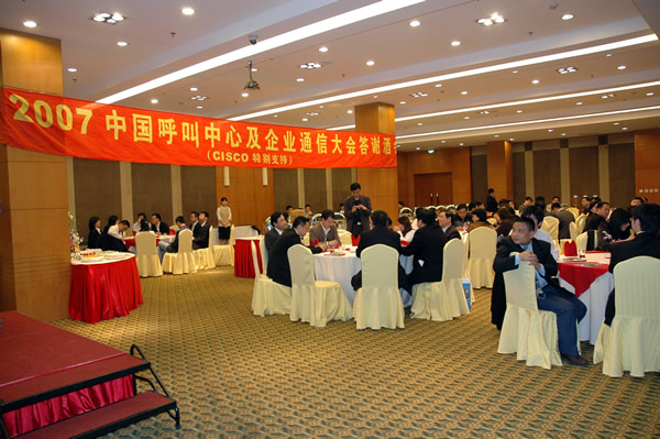 2007年4月18日至20日,2007中國(guó)呼叫中心及企業(yè)通信大會(huì)在上海光大會(huì)展中心國(guó)際大酒店隆重召開(kāi),以下是答謝酒會(huì)(思科特別支持)相關(guān)圖片報(bào)道: