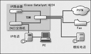Catalyst 4224結(jié)合了24端口快速以太網(wǎng)交換機(jī)的功能,即利用Catalyst 2600/3600分支機(jī)構(gòu)路由器、8端口模擬語(yǔ)音網(wǎng)關(guān)和縮小的AVVID呼叫管理器等為IP電話提供線路供電能力。所有的部件都集中在一個(gè)2U的機(jī)柜內(nèi),它還具有硬件加速的VPN和防火墻的性能。
