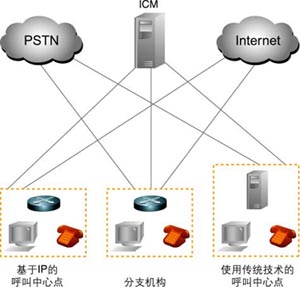 IPCC可安裝在單點(diǎn)環(huán)境中,也可集成到多點(diǎn)網(wǎng)絡(luò)聯(lián)絡(luò)中心企業(yè)中,還能在電信服務(wù)提供商代管的環(huán)境中實(shí)施。它利用企業(yè)現(xiàn)有的IP網(wǎng)絡(luò),使企業(yè)各機(jī)構(gòu)能充分利用其廣域網(wǎng)基礎(chǔ)設(shè)施,這樣不但降低了管理開支,還能讓企業(yè)聯(lián)絡(luò)中心的邊界擴(kuò)展到分支辦公室、家庭座席與知識(shí)型員工座席。不管企業(yè)是在擴(kuò)大現(xiàn)有業(yè)務(wù)的規(guī)模,還是正在建立自己的第一個(gè)聯(lián)絡(luò)中心,IPCC都可幫助企業(yè)獲得最低的合并網(wǎng)絡(luò)成本與性能優(yōu)勢(shì)。隨著新技術(shù)的出現(xiàn),IPCC基于開放式體系機(jī)構(gòu)有助于各機(jī)構(gòu)隨時(shí)利用新技術(shù)所帶來的優(yōu)勢(shì)(如圖1所示)。