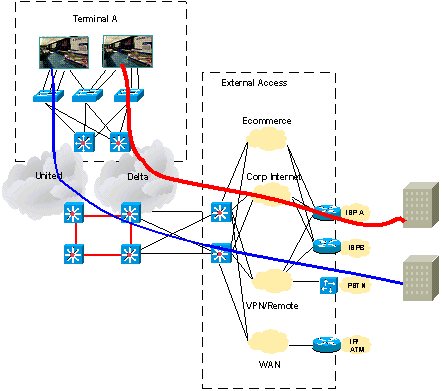 這種部署在新近的大型機場中可以找到。該客戶利用ONS 15252在雙DWDM 核心上部署了MPLS/VPN 和 SONET服務(wù)。他們采用Cisco