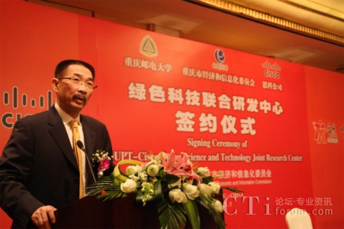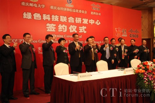 CTI論壇(ctiforum)2月3日消息(記者 潘婷):2月3日上午,思科公司與重慶郵電大學(xué)正式簽訂合作協(xié)議,共建“重慶郵電大學(xué)-思科綠色科技聯(lián)合研究實(shí)驗(yàn)室”!熬G色科技聯(lián)合研究實(shí)驗(yàn)室”的成立是思科履行其致力于推動中國創(chuàng)新和可持續(xù)發(fā)展承諾的重要舉措。此次合作中雙方將共同推動下一代互聯(lián)網(wǎng)、傳感器網(wǎng)絡(luò)以及綠色科技等領(lǐng)域的研發(fā),推進(jìn)應(yīng)用推廣和產(chǎn)業(yè)化發(fā)展,實(shí)現(xiàn)產(chǎn)學(xué)研一體化,幫助和支持重慶本土企業(yè)提高綠色科技創(chuàng)新的素質(zhì)和能力,進(jìn)而支持中國發(fā)展綠色經(jīng)濟(jì)、節(jié)能減排的長期戰(zhàn)略。
