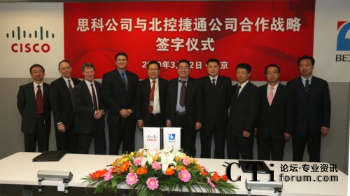CTI論壇(ctiforum)3月23日消息(記者 潘婷婷):2010年3月22日,北京——北控捷通(北京)科技發(fā)展有限公司(以下簡(jiǎn)稱“北控捷通”)與思科今天正式簽署合作備忘錄,雙方將在教育行業(yè)通信技術(shù)發(fā)展方面展開更加深入的合作。在合作中,思科將提供統(tǒng)一通信和統(tǒng)一計(jì)算解決方案,與北控捷通一起共同推動(dòng)IP平臺(tái)技術(shù)在教育行業(yè)中的應(yīng)用、推廣和標(biāo)準(zhǔn)化。同時(shí),此次合作也使北控捷通成為思科在教育行業(yè)優(yōu)先推廣應(yīng)用解決方案的合作伙伴之一。