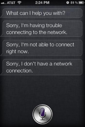 Siri不只是一個(gè)簡(jiǎn)單的語(yǔ)音控制軟件。為了能夠正常運(yùn)行,它必須連接到蘋果公司的服務(wù)器去獲取其他信息。例如,當(dāng)用戶詢問Siri田納西州納什維爾市的天氣情況時(shí),它必須與擁有此類信息的主數(shù)據(jù)庫(kù)進(jìn)行通信,然后再將結(jié)果反饋給用戶。