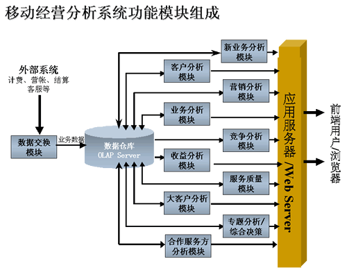 。。在多年業(yè)務(wù)支撐系統(tǒng)(BSS/OSS)的建設(shè)中,電信運(yùn)營(yíng)商積累了大量的原始業(yè)務(wù)數(shù)據(jù)。這些數(shù)據(jù)涉及到客戶發(fā)展、市場(chǎng)營(yíng)銷、業(yè)務(wù)收入、銷售渠道、網(wǎng)絡(luò)優(yōu)化、網(wǎng)絡(luò)規(guī)劃等各種方面,如何才能快速地從中提取(檢索、查詢)信息,深層次發(fā)掘隱藏在客戶數(shù)據(jù)和業(yè)務(wù)數(shù)據(jù)中的內(nèi)在規(guī)律,及時(shí)把握業(yè)務(wù)發(fā)展的趨勢(shì),對(duì)業(yè)務(wù)發(fā)展進(jìn)行前瞻性分析預(yù)測(cè)以制定相應(yīng)的市場(chǎng)策略,對(duì)市場(chǎng)機(jī)會(huì)做出及時(shí)、靈活的反應(yīng),成為電信運(yùn)營(yíng)商在信息時(shí)代的市場(chǎng)競(jìng)爭(zhēng)中立于不敗之地的關(guān)鍵所在。
