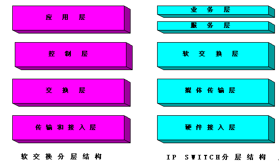 。。SUNTEK IP SWITCH的設計概念參考業(yè)界前瞻性的NGN體系,其體系結(jié)構(gòu)與軟交換的分層結(jié)構(gòu)的對應關(guān)系如下: