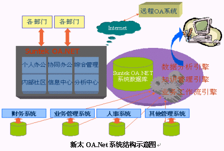 新太OA.NET系統(tǒng)采用B/S結(jié)構(gòu)設(shè)計(jì),系統(tǒng)以提供大量快速靈活的自定義功能以及許多核心平臺產(chǎn)品,如協(xié)同工作平臺、通訊平臺、知識管理平臺、信息服務(wù)平臺等,能夠幫助用戶快速實(shí)施信息化建設(shè),OA.NET系統(tǒng)的最大特色是實(shí)現(xiàn)"零代碼"維護(hù)功能,系統(tǒng)安裝后,無需編寫任何代碼就可生成各種辦公業(yè)務(wù)應(yīng)用,用戶只需幾個(gè)小時(shí)的培訓(xùn)就可以使用OA.Net提供的工具進(jìn)行復(fù)雜辦公流程的設(shè)計(jì),并且可以不需要經(jīng)過任何編碼的改動(dòng),就能輕松適應(yīng)流程變化的新情況。另外,OA.NET強(qiáng)調(diào)對企業(yè)內(nèi)部知識的有效管理和有效利用,能夠沉積企業(yè)日常的零散信息,并通過有序歸類的方式使之成為對企業(yè)有用的知識。OA.Net還提供了功能強(qiáng)大的個(gè)性化配置功能,每個(gè)員工都可以定制自己的界面風(fēng)格和功能模塊,并且可以自己建立個(gè)人的應(yīng)用環(huán)境,滿足個(gè)人的喜好。OA.Net包含了新太自主開發(fā)的業(yè)務(wù)工作流處理引擎,能夠在不用編寫代碼的情況集成其他業(yè)務(wù)系統(tǒng),實(shí)現(xiàn)了業(yè)務(wù)系統(tǒng)中的數(shù)據(jù)和辦公流程的完美結(jié)合,使得辦公應(yīng)用系統(tǒng)真正成為企業(yè)內(nèi)部的廣義化辦公門戶。