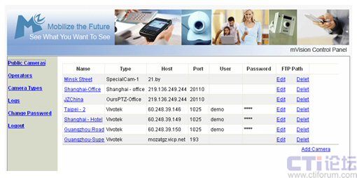 視頻采集端,主要是指負責視頻數(shù)據(jù)采集的攝像頭設備。目前該系統(tǒng)已經(jīng)有效地集成了以下三種類型的攝像頭:i)IP攝像機;ii)
