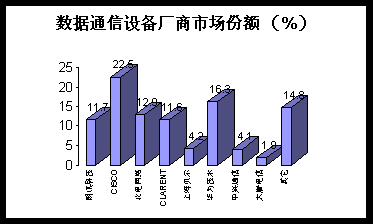 (2)市場(chǎng)特點(diǎn):由于非外資設(shè)備廠商的崛起,數(shù)據(jù)通信產(chǎn)品價(jià)格持續(xù)下降,中低端產(chǎn)品競(jìng)爭(zhēng)尤為激烈。華為、中興等公司在高端接入服務(wù)器、路由器等領(lǐng)域已取得突破,市場(chǎng)份額穩(wěn)步攀升,在高端接入服務(wù)器領(lǐng)域,非外資品牌已占到60%以上的份額。IP網(wǎng)絡(luò)設(shè)備繼續(xù)被CISCO等少數(shù)公司壟斷、非外資廠商試圖有所作為但收效甚微。運(yùn)營(yíng)商高漲的投資熱情與設(shè)備廠商的大力推動(dòng),是數(shù)據(jù)產(chǎn)品市場(chǎng)迅速擴(kuò)張的拉動(dòng)力量,網(wǎng)絡(luò)帶寬的不足以及運(yùn)營(yíng)商Qos的局限依然是該市場(chǎng)飛躍發(fā)展的瓶頸因素。