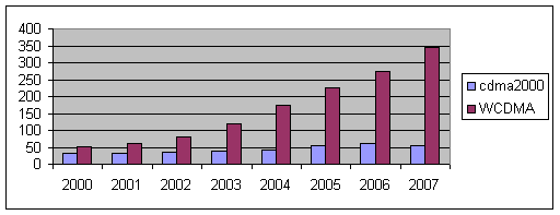 在2002年至2007年的預測期內(nèi),收入增長率將穩(wěn)定提高,從而將提高覆蓋率,用戶滲透率也會穩(wěn)定增長。2007年,由于WCDMA基礎(chǔ)設(shè)施的部署的增加,增長率將會有所提高。