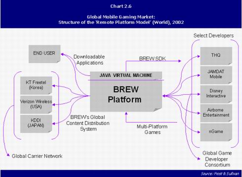 當然,企業(yè)對未來的把握也往往和自己對這個行業(yè)的熟悉程度分不開的,所以微軟今天的策略大都帶有強烈的IT和互聯網的味道。而移動市場當中的新貴高通公司,就想當年的微軟一樣,偶然性地掌握了CDMA的核心技術,同時由于移動通信在全球的興起,成了移動通信價值鏈中的重要環(huán)節(jié)之一。但是,由于所有的競爭廠家都希望自己擁有核心技術,技術上略落后,但更開放的GSM得到了更多市場的青睞。為了保持自己的地位,高通采取了與微軟相似的地位,拋出了名為BREW的移動應用平臺。與微軟在寬帶和廣電的策略相同,高通在移動通信領域提供從技術、服務到外包運營等全套解決方案。在移動游戲領域,高通為美國第一大無線運營商Verizon搭建了基于BREW的游戲業(yè)務平臺,同時負責這一平臺的運圍和與游戲提供商的合作及管理、促銷等工作。與Verizon的合作是獨家的,建立在利潤分成的基礎上,到現在為止,這種模式是移動游戲領域最成功的合作之一。可以說,高通把自己變成了半個運營商,同時由于擁有客戶資源和合作模式提供,高通的地位有望超過Verizon。
