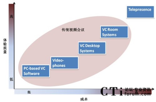 & Sullivan 咨詢顧問楊梅從體驗質量及成本兩個緯度對目前市場上的視頻會議系統(tǒng)產(chǎn)品進行了深入比較,發(fā)現(xiàn)網(wǎng)真在體驗質量上要明顯高于其他產(chǎn)品,然而其在部署成本上同樣要高于其它產(chǎn)品,這也是目前網(wǎng)真產(chǎn)品推廣中遇到的較大問題。如何能使客戶真正了解建立虛擬互動社區(qū)的需求,如何從貴族化走向平民化成為其蓬勃發(fā)展的關鍵。
