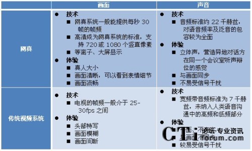 網(wǎng)真產(chǎn)品與企業(yè)的其他視覺溝通產(chǎn)品不同,不同于以軟件為基礎的視頻通信應用、電話視頻、以硬件為基礎的桌面視頻系統(tǒng)及群體視頻會議等各類傳統(tǒng)視頻系統(tǒng)。Frost