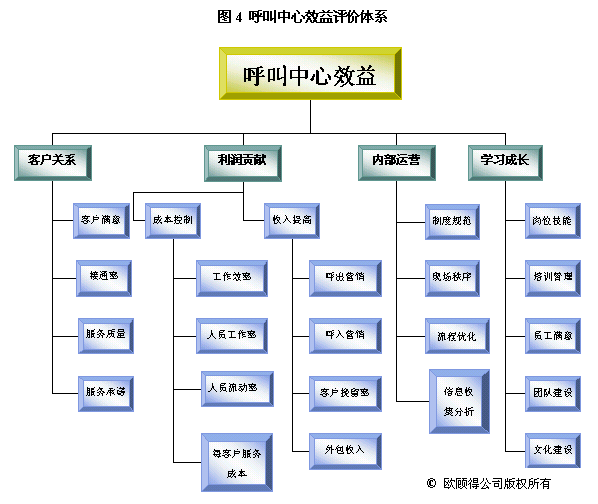 根據(jù)年度重點工作及目標,我們就可以設計關鍵措施來使其實現(xiàn)。通常一項關鍵措施可以有助于幾個目標的達成。如建立培訓體系,可以使得在崗培訓、上崗培訓、多技能訓練以及崗位技能達標率有所提升,而體現(xiàn)在業(yè)務上的效果則是服務質(zhì)量的提升、呼出營銷收入增加和客戶挽留率提高。