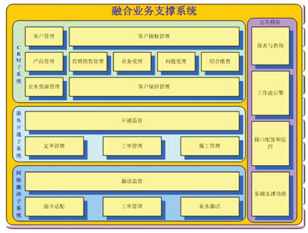 隨著電信運營商重組的深化和全業(yè)務運營的逐步開展,對固網、移動融合業(yè)務運營的支撐是各電信運營商運營支撐系統面臨的現實問題與挑戰(zhàn),如何統一管理客戶數據、支持全面的營銷管理、受理固網移動捆綁業(yè)務、實現固網移動業(yè)務的快速開通等,都是新的運營支撐系統必須解決的問題。大唐電信旗下大唐軟件基于公司發(fā)展10多年的全面運營支撐產品體系,深入分析固定、移動網融合的全業(yè)務支撐需求,整合公司已有產品,自主設計、研發(fā)了新一代滿足電信運營商全業(yè)務運營需要的融合業(yè)務支撐系統產品。