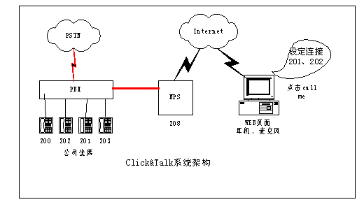 舉個(gè)例子,在傳統(tǒng)的網(wǎng)上交流手段下,對(duì)于一個(gè)在線商戶來說,其客戶如果需要與而且也容易造成客戶流失,F(xiàn)在采用Click&Talk系統(tǒng)后,一個(gè)在線的商戶只要將一個(gè)Click & Talk的按鈕嵌在在線商店里。世界各地的用戶只需要通過PC,點(diǎn)擊在線商戶的這個(gè)按鈕,就能與商戶電話聯(lián)系,或請(qǐng)求在方便的時(shí)間給予回?fù)。通過這種通信模式,世界各地的客戶都能和您保持密切互動(dòng)的聯(lián)系,而不用擔(dān)心長(zhǎng)途電話的費(fèi)用。還可以實(shí)現(xiàn)公司出差人員及分支機(jī)借助Click&Talk平臺(tái)和公司總部的通話的應(yīng)用,大幅節(jié)省話費(fèi)成本。