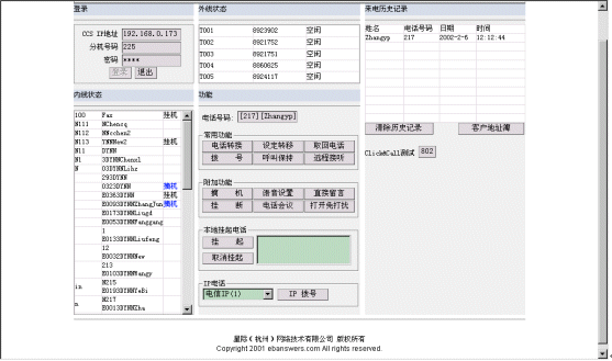 。。利用內嵌的OCX控件,星際網(wǎng)絡已經完全實現(xiàn)了在web頁面調用呼叫中心的功能,其主界面如下: