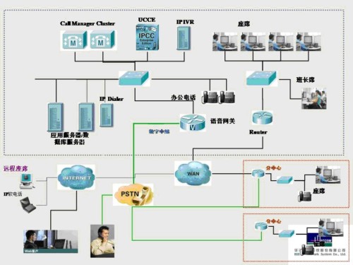 IP聯(lián)絡(luò)中心(IPCC)是Unified Communication解決方案的一個(gè)組成部分,在Unified Communication Manager系統(tǒng)的基礎(chǔ)上,通過(guò)Unified Contact Center Enterprise(UCCE)或Unified Contact Center Express(UCCX)提供完整的呼叫中心功能,包括靈活定制的路由分配策略,豐富的座席、班長(zhǎng)席桌面應(yīng)用,強(qiáng)大的預(yù)測(cè)與預(yù)覽式外撥管理工具,完善的基于瀏覽器的報(bào)表工具及模板和統(tǒng)一的系統(tǒng)管理工具等。