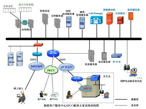 在IP技術(shù)應(yīng)用日益廣泛的今天,新晨集團(tuán)和著名網(wǎng)絡(luò)技術(shù)提供商-美國(guó)思科系統(tǒng)有限公司(CISCO)合作,推出了基于IP技術(shù)的CALL CENTER解決方案。該方案以CISCO IP CONTACT CENTER平臺(tái)為核心,簡(jiǎn)稱IPCC。