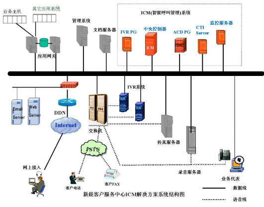 新晨的客戶服務(wù)中心解決方案是一整套全面的解決方案,有基于IP、基于電話交換機(jī)和基于語(yǔ)音板卡多種實(shí)現(xiàn)方式,可以適合于金融、保險(xiǎn)、證券、政府、航空、郵政、制造業(yè)等不同行業(yè)客戶各種規(guī)模客戶服務(wù)中心應(yīng)用需求。