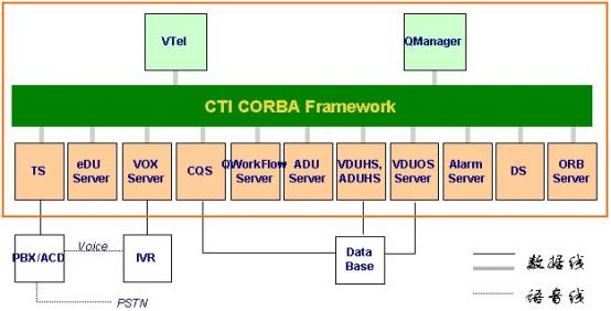 市場(chǎng)上有很多CTI產(chǎn)品,如AVAYA的CVCT、Dialogic(已被Intel收購(gòu))等。這些CTI僅相當(dāng)于圖3中的“TS”(電話服務(wù)器),由此可見QCTI具有明顯的比較優(yōu)勢(shì):