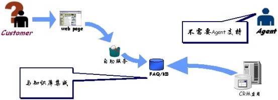 自助服務(wù):實(shí)際上,客戶咨詢的很多問題都屬于FAQ。對(duì)于這類問題,Quintus WebCenter提供“自助服務(wù)”,用戶無(wú)須客服代表的幫助,即可快速獲得答案,這一方面可減少企業(yè)客服代表的數(shù)量,另一方面提高了用戶咨詢的響應(yīng)速度。此外,CRM的管理人員可通過(guò)FAQ管理加入新的FAQ,或去掉過(guò)時(shí)的FAQ。