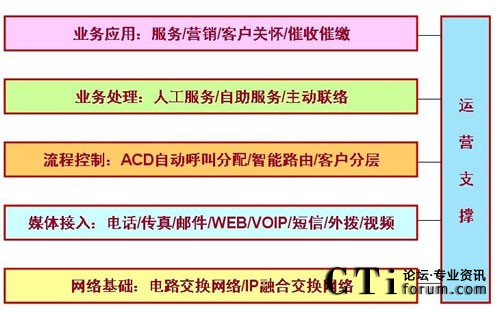 多媒體接入方式,應(yīng)對以混合業(yè)務(wù)處理的高效座席處理,才是現(xiàn)代化、高效率的聯(lián)絡(luò)中心業(yè)務(wù)模式。而聯(lián)絡(luò)中心后臺的業(yè)務(wù)處理卻是統(tǒng)一的,其構(gòu)架層次分明,如下圖示: