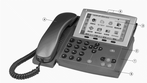 InfoPhone與普通電話機(jī)的最大區(qū)別在于:她擁有增強(qiáng)型的操作面板(圖中標(biāo)識2),超清晰的液晶顯示螢?zāi)? 圖中標(biāo)識3),手感舒適的點觸筆(圖中標(biāo)識5),實用型的狀態(tài)指示燈(圖中標(biāo)識6)。通過點觸筆和操作面板上的按鍵點選和控制液晶顯示螢?zāi)簧系倪x項,完成相應(yīng)的操作。