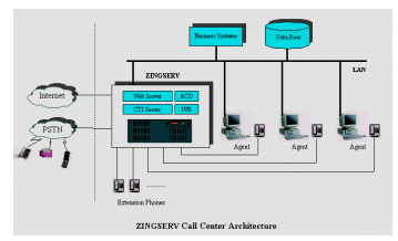 ZINGSERVò采用可靠性、安全性極高的嵌入式實時LINUX操作系統(tǒng)進行開發(fā)。系統(tǒng)軟件采用客戶/服務器結(jié)構(gòu),服務器集ACD(技能組)、IVR、CTI