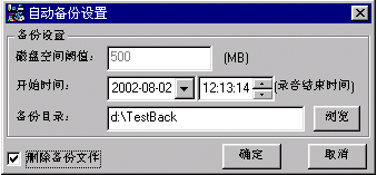 自動(dòng)備份由事先設(shè)定的磁盤空間報(bào)警閾值觸發(fā),它會(huì)發(fā)出信息提示或聲音提示,然后將用戶事先確定的時(shí)間范圍內(nèi)的錄音文件全部備份到客戶機(jī)硬盤、磁盤陣列或其他記錄介質(zhì)上,并且可以自動(dòng)刪除系統(tǒng)硬盤上已經(jīng)被備份出來的文件。