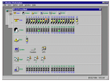 VoiceMaster的Monitor Workstation是一個(gè)為提供即時(shí)系統(tǒng)功能和動(dòng)態(tài)信息而設(shè)計(jì)的通用工具程序。監(jiān)控工作站(Monitor Workstation)顯示系統(tǒng)組件和系統(tǒng)操作特性、通訊線路、主控計(jì)算機(jī)的連接情況、不間斷電源(UPS)及磁盤容量等各自實(shí)時(shí)狀態(tài)的圖形簡(jiǎn)報(bào)。當(dāng)有問(wèn)題或出錯(cuò)時(shí)產(chǎn)生報(bào)警及警告信息來(lái)通知系統(tǒng)管理員。