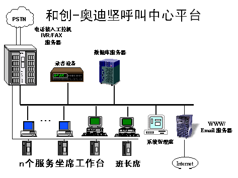 系統(tǒng)專(zhuān)線(xiàn)連接Internet網(wǎng)絡(luò),客戶(hù)可以通過(guò)Internet網(wǎng)絡(luò)與座席人員進(jìn)行電話(huà)交流。