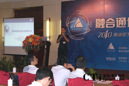 CTI論壇(ctiforum)9月10日消息(記者 楊毅):2010年9月9日奧迪堅在廣州市嘉鴻華美達廣場酒店舉辦的“下一代融合通信平臺華南研討會” 圓滿落下帷幕。本次會議以 “融合通信” 為主題,將最新的由“IPT、IPCC、UC和Mobility”四個部分組成的融合通信技術(shù)完美呈現(xiàn)在嘉賓眼前,吸引了業(yè)界眾多知名廠商和媒體,并得到了奧迪堅在各個行業(yè)的新老客戶的積極響應(yīng)和參與。通過奧迪堅的精彩主題演講、現(xiàn)場的情景秀表演和眾多案例分享等多種形式,與合作伙伴及嘉賓共同探討融合通信技術(shù)該如何發(fā)展、解讀渠道新政策、同時更加深入了解奧迪堅產(chǎn)品,提高合作伙伴在市場上的競爭力。CTI論壇(www.mysaio.com)獨家承辦此次會議,并進行全程報道。