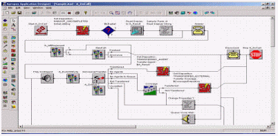 Apropos應用程序設計是一個基于GUI的先進的電話PIL版本。呼叫流曲線圖通過放置和連接TeleObjects被建立,在格子之上的圖線代表各種各樣的呼叫流功能。當數據被保存時,因為PIL代碼,呼叫流的圖線會被自動地產生。然后這個合成的結果通過在Apropos服務器上被運行來實現改變呼叫處理系統(tǒng)。