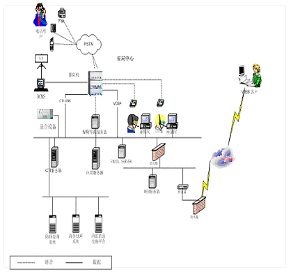 2 ) CTI(計算機電話集成)服務器:通過該平臺實現(xiàn)計算機網(wǎng)絡與電話系統(tǒng)的無縫結(jié)合,可通過計算機應用系統(tǒng)對話務處理進行操作;