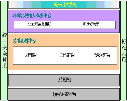 2 )系統(tǒng)基于 J2EE架構,采取三層結(jié)構設計,分為前端應用(外部公共信息服務平臺)、應用支撐平臺和系統(tǒng)軟硬件平臺,以應用支撐平臺為核心,以安全和標準為保證。