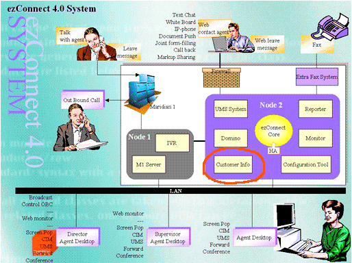 作為一種成功的企業(yè)應(yīng)用案例,這種方案已經(jīng)成功的應(yīng)用在我們的企業(yè)級多媒體呼叫中心 ezConnect產(chǎn)品中,該產(chǎn)品能同時處理傳統(tǒng)呼叫中心的電話請求和以互聯(lián)網(wǎng)為中心的Web 請求,同時配備多種實時交流手段,軟電話功能和基于web 的文本交談,圖片共享,白板,文檔推送,IP電話,UMS, SMS 和WAP 等為客戶提供很方便且實用的功能, 并且提供基于特定技能路由的分配器,同時處理電話和Web請求。而且同時支持多種語言并提供統(tǒng)一的配置工具。當該請求到達座席時,在座席的桌面上彈出客戶的基本信息和交易信息,座席可以根據(jù)這些信息給客戶提供更加個性化的服務(wù)。本文就針對該產(chǎn)品的實際開發(fā)和實現(xiàn), 以及工作中的一些感想來與大家共同探討客戶信息管理的應(yīng)用和前景。
