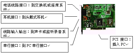 IN和LINE OUT接口,與聲卡配合實現(xiàn)語音錄放;計算機(jī)通過串行口實現(xiàn)對座席卡的控制。