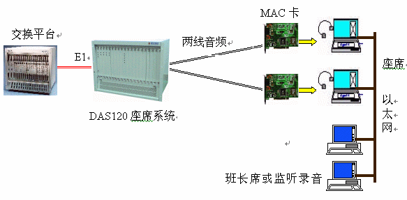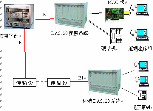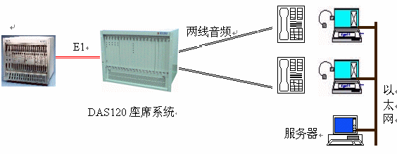 ·DAS120與交換平臺(tái)采用E1連接,信令為透明通道Clear Channel。所有通道在初始化時(shí)就實(shí)現(xiàn)連接。