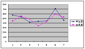 呼出員的訂購次數(shù)和業(yè)務(wù)員的訂購次數(shù)變化趨勢基本一樣,7個(gè)比較點(diǎn)中,只有一個(gè)是業(yè)務(wù)員高于呼出員,其余均是呼出員比業(yè)務(wù)員高。