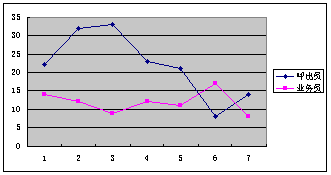 第五:考核指標(biāo)及獎(jiǎng)勵(lì)機(jī)制的建立:呼出人員必須有相應(yīng)的考核辦法及獎(jiǎng)勵(lì)機(jī)制,這從表1我們可以清楚地看到,呼出員的業(yè)績還不是很穩(wěn)定,有下降趨勢,而且幅度較大,這是由于在試運(yùn)行期間沒有建立相應(yīng)的考核指標(biāo)及獎(jiǎng)勵(lì)機(jī)制造成的,而有相應(yīng)機(jī)制的業(yè)務(wù)員的業(yè)績相對要穩(wěn)定得多。當(dāng)然富爾已經(jīng)意識到這個(gè)問題了,并采取了相應(yīng)的措施,目前2個(gè)呼出人員每人每天均穩(wěn)定在1萬元左右,說明采取的措施得力。