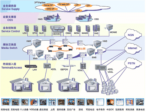 - 開(kāi)展的節(jié)目:時(shí)移電視、直播電視、點(diǎn)播、寬帶、游戲、IP電話等;
