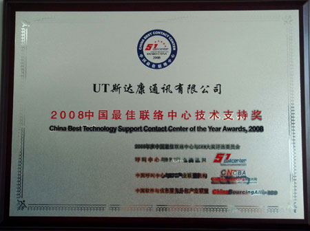 UT斯達(dá)康獲"2008中國最佳聯(lián)絡(luò)中心技術(shù)支持獎(jiǎng)"
