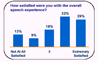 HarrisInteractive公司的SpeechSatisfactionSurvey語(yǔ)音應(yīng)用客戶滿意度的市場(chǎng)調(diào)查研究報(bào)告足以證明使用者對(duì)于語(yǔ)音服務(wù)技術(shù)的態(tài)度。最近,相當(dāng)數(shù)量的代表美國(guó)各階層的人接觸了語(yǔ)音服務(wù)。這些使用者對(duì)語(yǔ)音服務(wù)感到非常方便、自信、非常滿意的態(tài)度,并表示將來(lái)還會(huì)繼續(xù)使用語(yǔ)音服務(wù)系統(tǒng)。