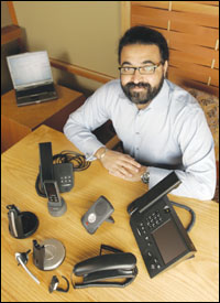 舉例來說,微軟希望在用戶向?qū)Ψ桨l(fā)送即時信息或電子郵件之前,PC軟件能夠在條件允許的情況下使你看到對方,即所謂的“一鍵(one clike)實現(xiàn)通信”(即如果你要呼叫對方,只須在他們的名字上輕點鼠標(biāo))。同時,微軟也開始充分利用電話,專門研發(fā)了代號名為“Tanjay”的語言設(shè)備。這個形似智能電話的設(shè)備通過將軟件應(yīng)用于語音設(shè)備中,使語音成為豐富多樣的PC協(xié)作體驗的一部分。