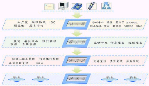 證券客戶服務(wù)系統(tǒng)面向用戶提供電話、傳真、網(wǎng)絡(luò)等方式的咨詢、查詢、委托、銀行轉(zhuǎn)帳、自動(dòng)業(yè)務(wù)等業(yè)務(wù)功能。系統(tǒng)以提供“個(gè)性化、社會(huì)化、信息化”服務(wù)為重要特征,具有“滿足未來業(yè)務(wù)發(fā)展需要”、“滿足實(shí)時(shí)處理”的能力。系統(tǒng)在設(shè)計(jì)、實(shí)現(xiàn)上,以具有先進(jìn)技術(shù)和高穩(wěn)定性的呼叫中心平臺(tái)為基礎(chǔ),竭力為證券業(yè)務(wù)運(yùn)營商建立一個(gè)強(qiáng)大、開放、靈活的業(yè)務(wù)服務(wù)系統(tǒng),更好地滿足證券用戶日益增長的各種新的服務(wù)需求,保持證券企業(yè)在市場競爭中的優(yōu)勢。