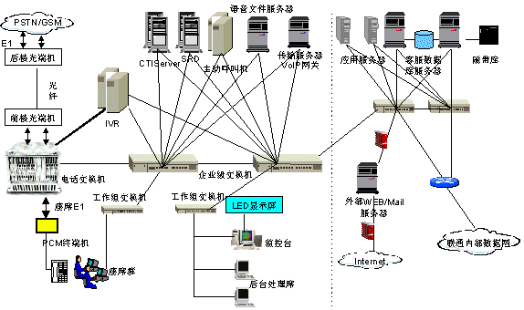 系統(tǒng)提供話務功能(例如:三方通話)、質(zhì)檢管理功能(例如:全程全席錄音)、系統(tǒng)管理功能(系統(tǒng)可視化配置、業(yè)務數(shù)據(jù)維護)、系統(tǒng)監(jiān)控功能(例如:大屏幕聲光報警)、流程監(jiān)控功能(例如:對投訴處理監(jiān)控)、基本業(yè)務功能(業(yè)務咨詢、業(yè)務受理、話費查詢、投訴建議、分銷商服務、大客戶服務、緊急服務等)、報表統(tǒng)計與信息查詢分析功能和增值業(yè)務功能(例如:新業(yè)務宣傳)等等。