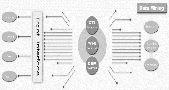 CTI.CRM整合了先進的CTI(Computer Telephony Integration)、Call Center 、VoIP、Web、Fax、Email等多種通訊技術(shù),并導(dǎo)入客戶關(guān)系管理(CRM)的最新理論,使企業(yè)在市場行銷,業(yè)務(wù)開拓,及客戶服務(wù)上,均可透過此一整合工具,拓展商機,提升服務(wù)績效。