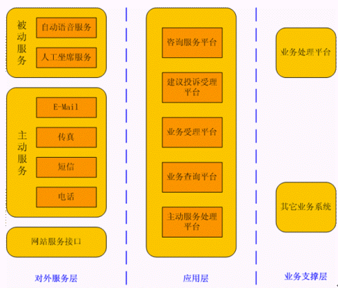 該系統(tǒng)提供5*8小時人工服務和7*24小時自動服務,提供政策法規(guī)咨詢、辦事指南、信息查詢、受理投訴舉報、進行社會調(diào)查五大功能;預留電話職介和受理勞動保障相關(guān)電話業(yè)務兩大功能,同時提供輔助功能,包括:資料庫建設(shè),信息定制與發(fā)布,內(nèi)部管理等。